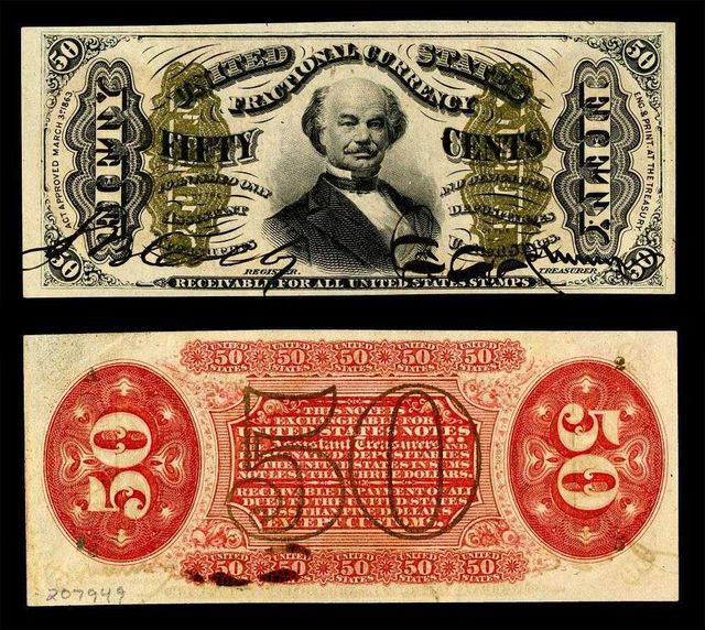 Après la guerre de Sécession (1861-1865), les États-Unis souffrent d’une pénurie de métal : les pièces de monnaie disparaissent, thésaurisées ou fondues. Pour pallier ce manque de petite monnaie, le gouvernement fédéral met en circulation des billets de très faible valeur, imprimés en papier. Ils n’ont jamais été démonétisés, mais ils ne sont plus utilisés evidemment car ils sont dans des collections. Certains valent quelques centaines de dollars.